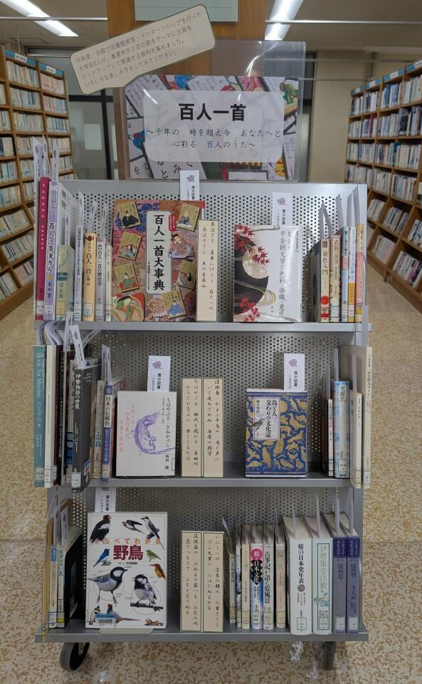 今年度、当館で図書館実習・インターンシップを行った大学生4人が春夏秋冬と恋の歌を一首ずつ選びました。