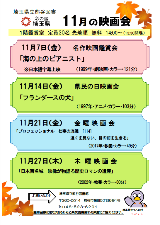 県立熊谷図書館 映画会予定
